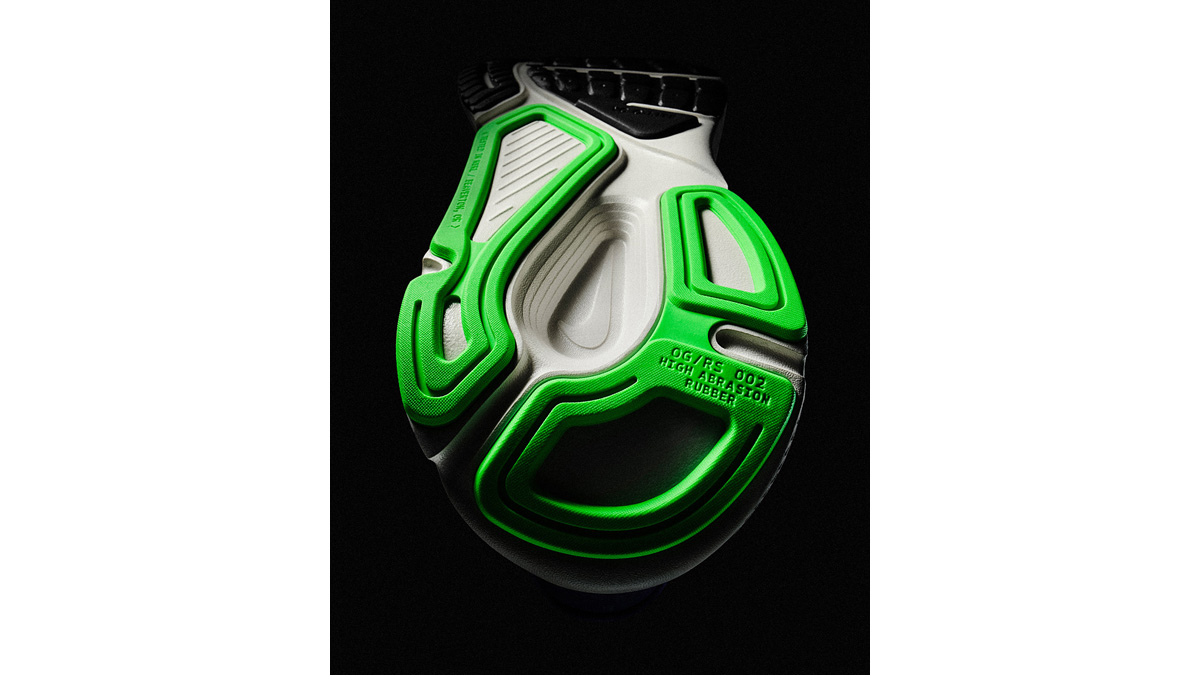 構造強化のための繊細なレイヤーで安定感を高めつつ、特殊メッシュのアッパーが必要な部分の通気性とサポート性を確保した。シュータンと履き口は柔らかく仕上げ、快適に足を包み込みながら、フィット感も高めている。