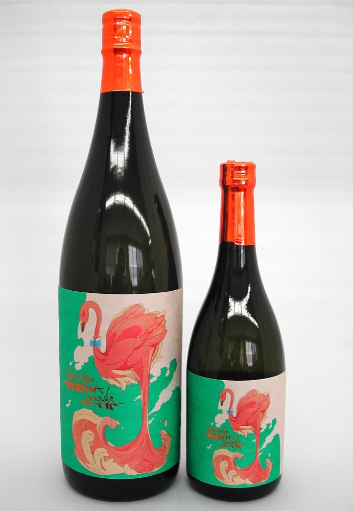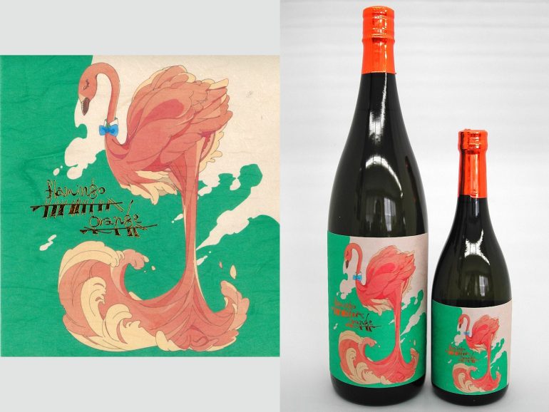 商品名とデザインは東京の酒販店『伊勢五本店』が考案。香りの印象であるオレンジと、ハイビスカスの品種『オレンジフラミンゴ』から着想を得ており、ラベルデザインも花弁と鳥をモチーフに仕上げている。