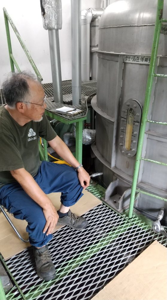 「以前より杜氏から減圧蒸留を試したいと相談を受けていました。『粘度が高く濃厚な芋麹のもろみなら、減圧蒸留でまだ見ぬ新しい香りを引き出せるのではないか』と。思いもよらないようなことを考え挑戦する、というのがうちの杜氏のモットーなんです」