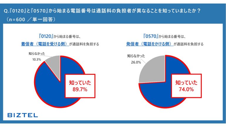 0120・0570それぞれの「番号が持つ意味」の認知度を調査すると、0120番号では89.7%、0570番号では74.0%という結果になった。いずれも7割超と、高い水準にある。