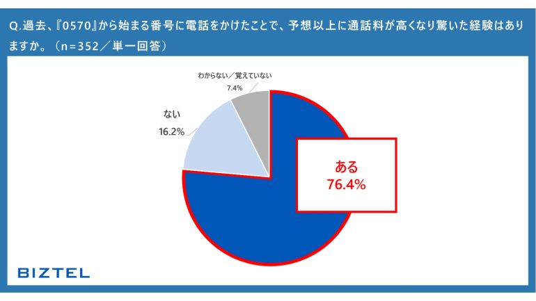 ■0570番号を利用した76.4%が「想像以上に通話料が高くて驚いた」