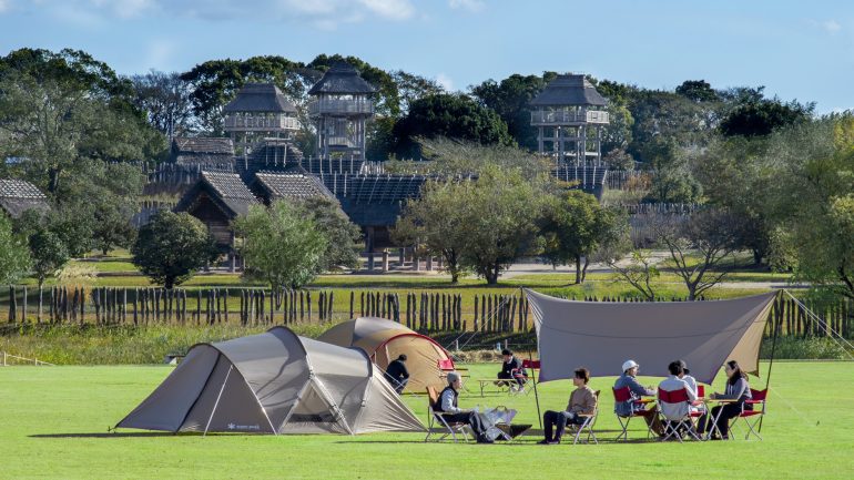雄大な脊振山を望む開放的なロケーションに趣の異なる2つのキャンプフィールドを展開。北口キャンプフィールドでは、佐賀平野ならではの広い空の下、ゆったりとしたキャンプを楽しめる。一方、吉野ヶ里遺跡を眺める新西口キャンプフィールドは、ストアやレストラン、大型遊具も近く、利便性も抜群だ。どちらのキャンプフィールドも、ソロからファミリー、グループなど幅広く利用できるほか、日帰りプランや手ぶらCAMPプランも用意しており、キャンプ初心者でも気軽に野遊びを楽しめる。