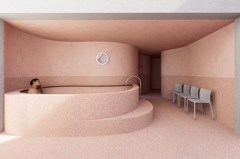 内装設計は2025年大阪・関西万博のパビリオン、東急歌舞伎町タワーなどを手がけた建築家永山祐子氏が担当。永山氏は、新宿が古い建物と新しい建物が混在し、異なる時代のレイヤーが重なり合った独特の魅力を放つ街であるとした上で、50年間の記憶を蓄積してきた金沢浴場の中にも存在している「時代の重なり」を表現することを目指したとコメントしている。