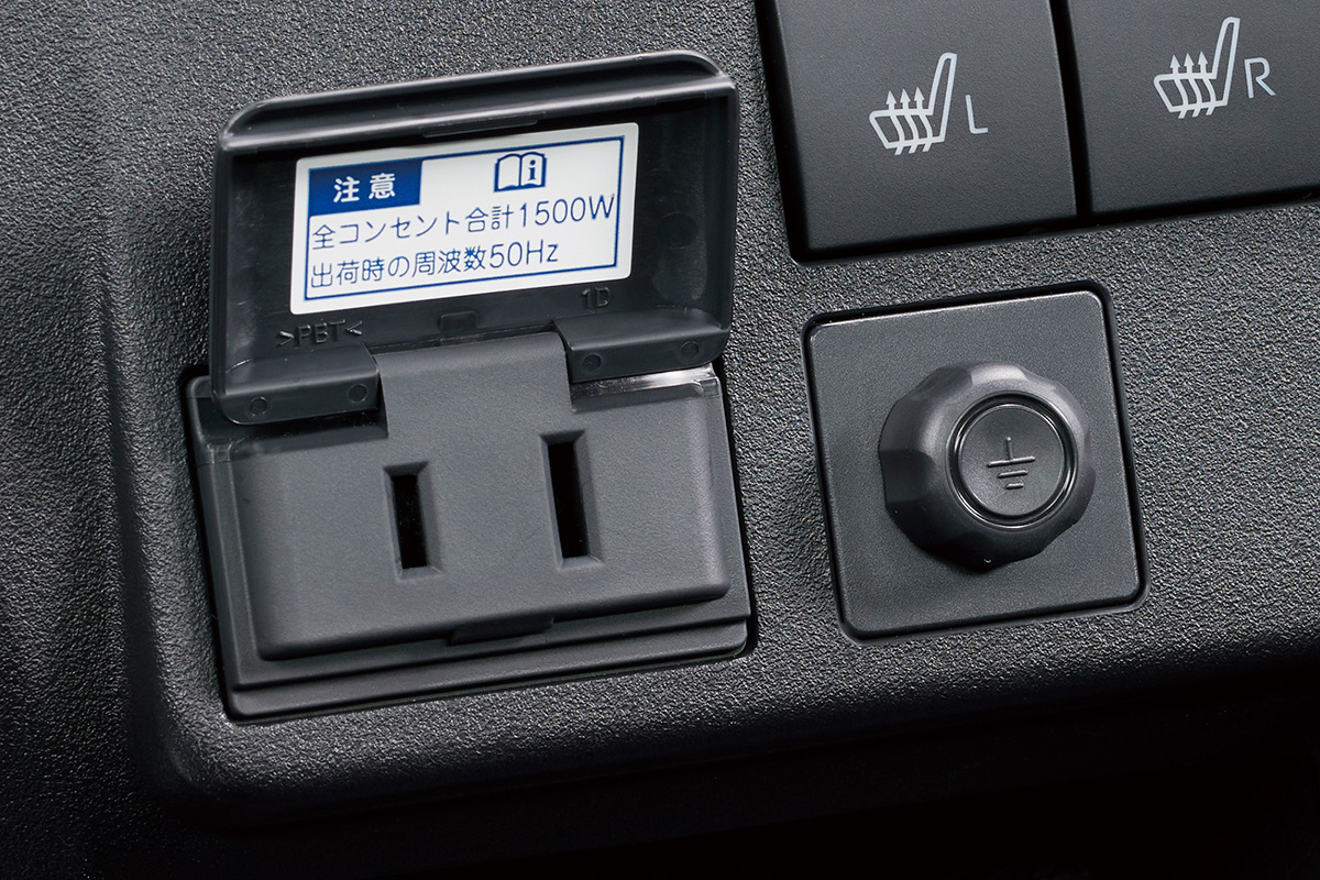 ・走行時でも使えるAC100Vで最大消費電力の合計が1500W以下の電気製品が使用可能なアクセサリーコンセントを装備