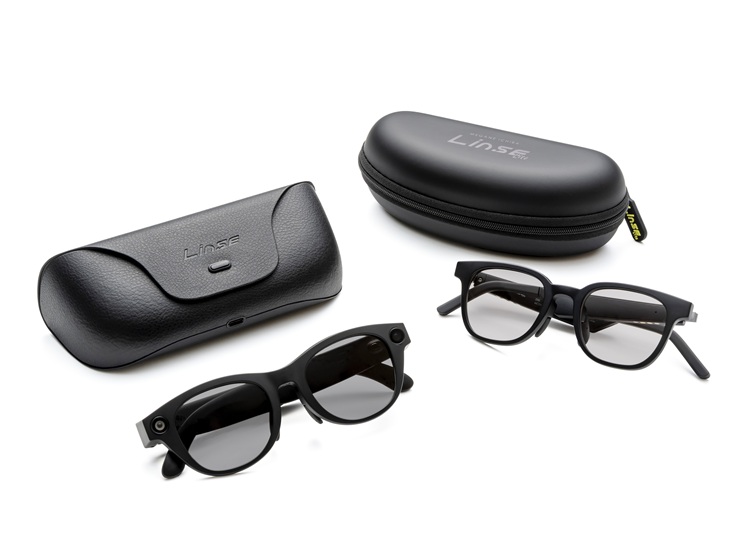 スマートグラス「Linse」(55,000円)は、右のテンプルにはカメラ、左のテンプルにはLEDのライトとセンサーが付いている。目線の高さにある1,200万画素のカメラで、自分の目線をそのままに動画や写真で撮影することができる。操作やメンテナンス作業等、手がふさがった状態でもハンズフリーで写真や動画を撮影できる。