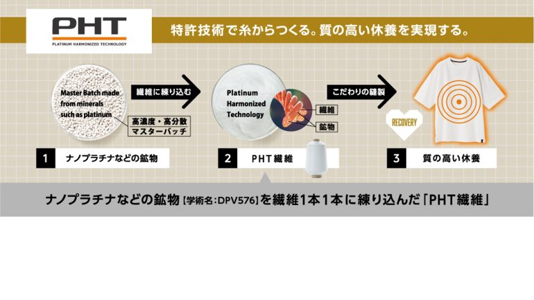 同社は創業以来、独自の特殊繊維「PHT(Platinum Harmonized Technology)」を用いた製品を通じて、人間のパフォーマンス最大化に不可欠な「攻めの休養」をサポートしてきた。
