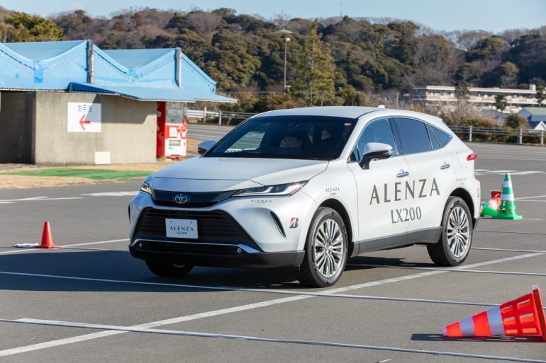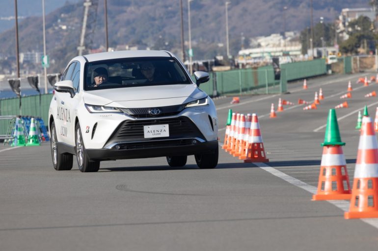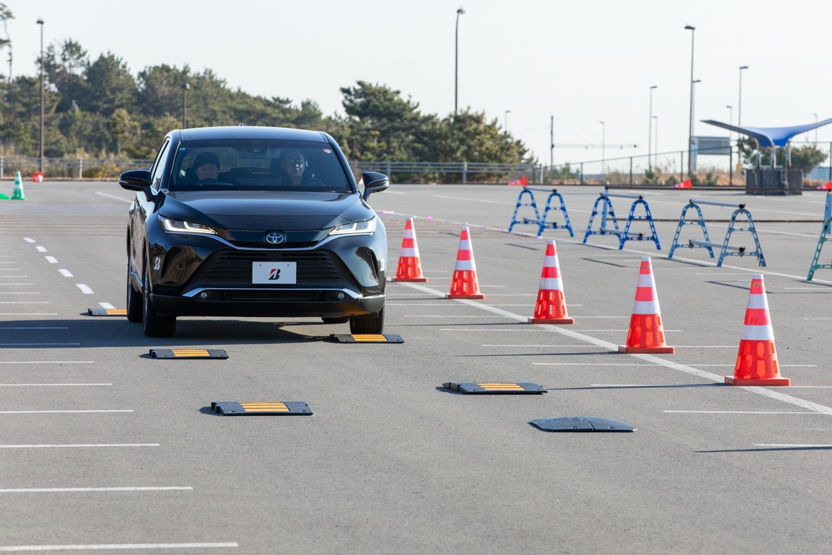 まずは両車両を用い、特設コースで20km/hのレーンチェンジ、40km/hのスラローム、60km/hのレーンチェンジ、30km/hでのロープ乗り越え、30km/hでの突起物乗り越えを2台連続して体験。