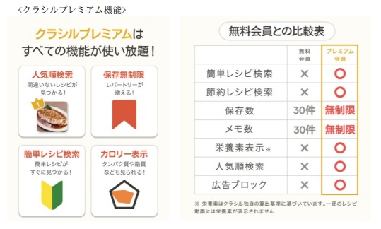 通常では月額税込480円なので1年分の料金は計算すると5,760円。有料プランにすると、レシピ検索がしやすくなり、レシピ保存数が多くなるため、無料会員と比べて有利だ。利用する人は課金せずに便利な機能を使うことができ、節約できると感じることだろう。