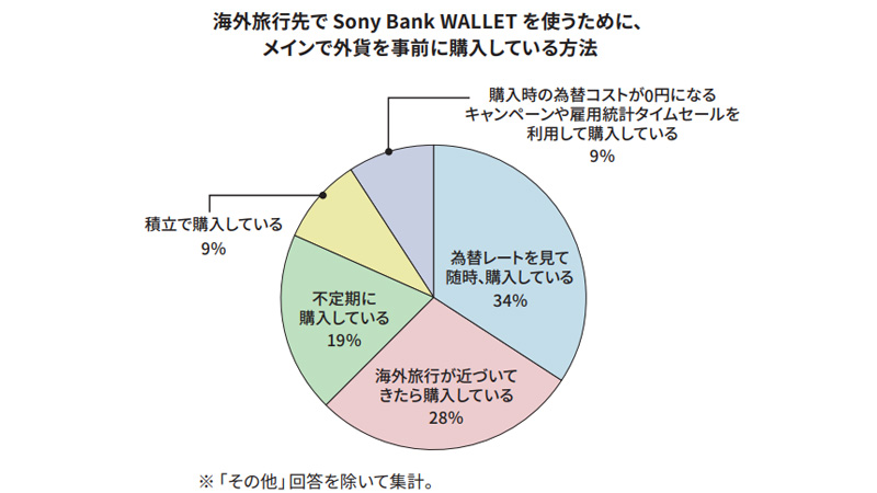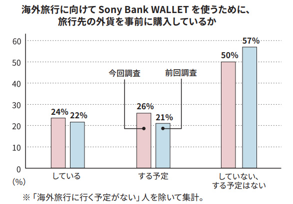 また、「海外旅行先で Sony Bank WALLET を使うために外貨を事前購入している、またはする予定」と回答した人は前回より7ポイント増え、50%となった。