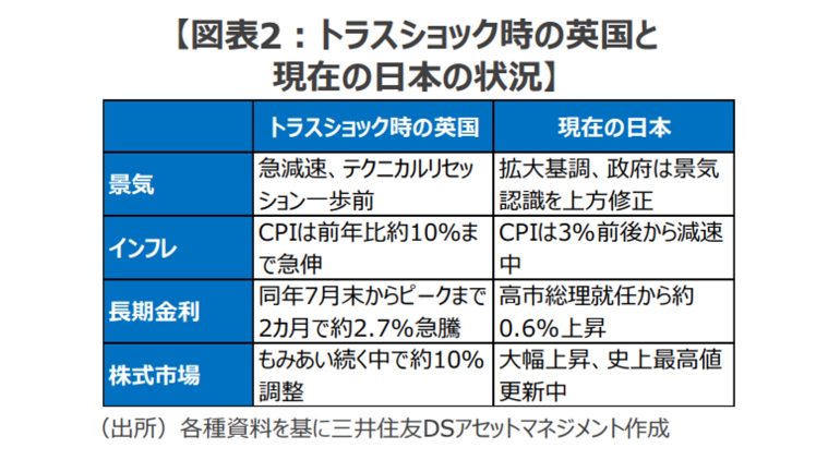 一方、先進国における「悪い金利上昇」の典型例として知られる2022年9月の英国でのトラスショックでは、放漫財政への懸念から債券市場が暴落して長期金利は僅か1週間余りのうちに約1.4%上昇した。