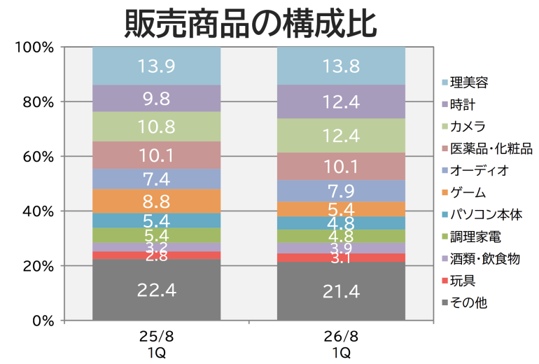 時計では有楽町店で高級腕時計の中古販売を開始し、物価高に直面する30〜50代のビジネスパーソンや訪日外国人の需要を見込むなど、高単価商品の動きも売上を押し上げる一因となっている。