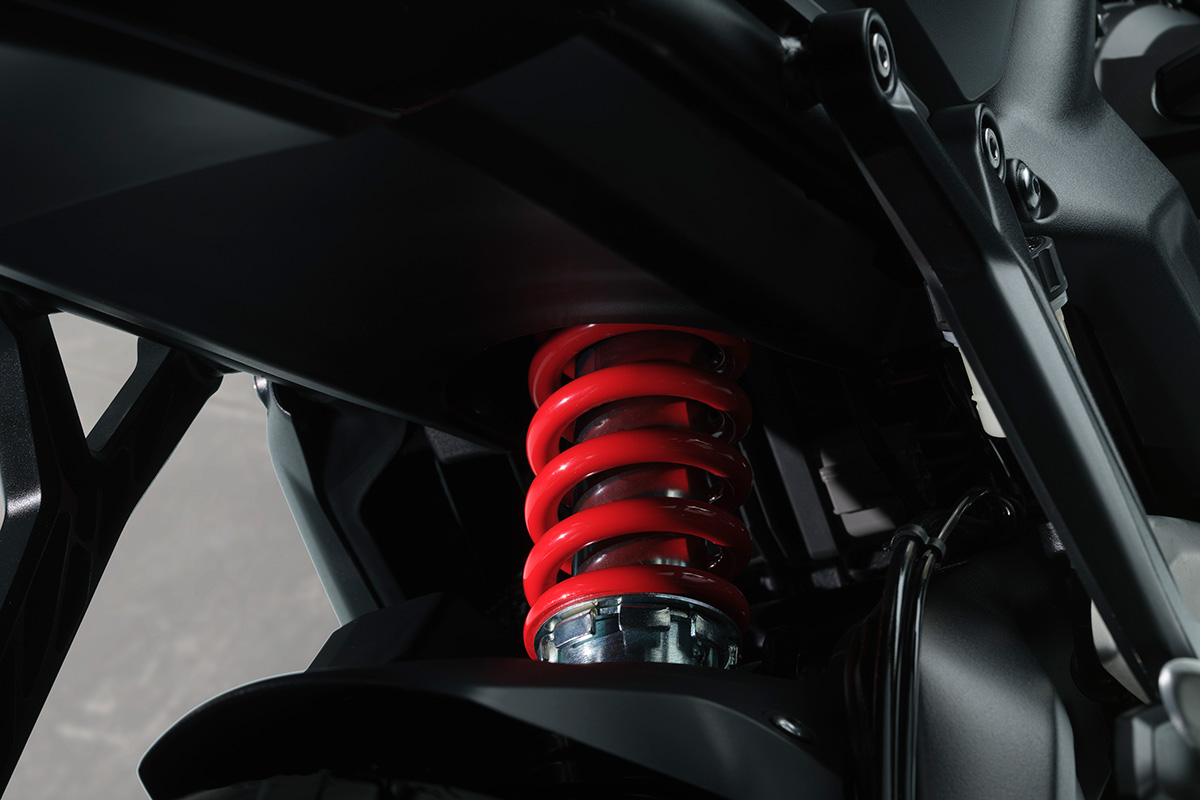 シャシーは、俊敏でライダーに安心感をもたらすハンドリング特性を継承しつつ、2026年モデルではアップデート。改良されたフレームに加え、プリロードおよびリバウンド調整機構を備えた新型SHOWA製リアサスペンションユニットを採用。フロントには、SHOWA製41mm倒立ビッグピストンフォークを装備し、120mmのストローク量を確保している。リアの新RSUは、130mmのストロークと高い調整幅を備え、ライダーはセットアップを自分好みに追い込み、よりスポーティなロードスターライディングを楽しむことができる。