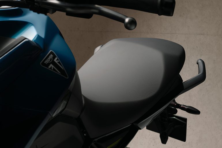 2026年モデルのTrident 660には、新たなボディワークとスタイリングアップデートを採用し、引き締まったよりマッシブな佇まいを実現している。再設計されたワイドなフューエルタンクには、彫りの深いニーグリップ形状を採用。さらに、ライダー用とパッセンジャー用を分けた新設計の分割式シートを装備し、ソロライディング向けにはアクセサリーとしてシートカウルも用意されている。