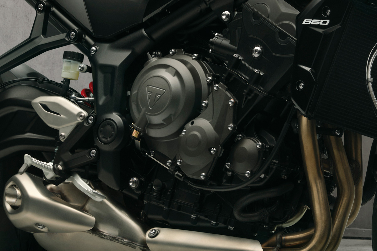 さらにパフォーマンス向上の大きな鍵となるのが、エンジンハードウェアへの大幅な改良となる。従来のシングルスロットルボディから、各シリンダー専用の44mm独立スロットルボディを3基採用する構成へと刷新した。このアップデートにより、トライアンフならではの3気筒エンジンのスポーティな特性がさらに際立ち、力強い低回転トルクに加え、中回転域から高回転域にかけてのパワーをより一層強化。これらの変更は新たなチューニングと相まって、全回転域においてより鋭いレスポンスとキャラクター豊かなライディング体験をライダーにもたらす。
