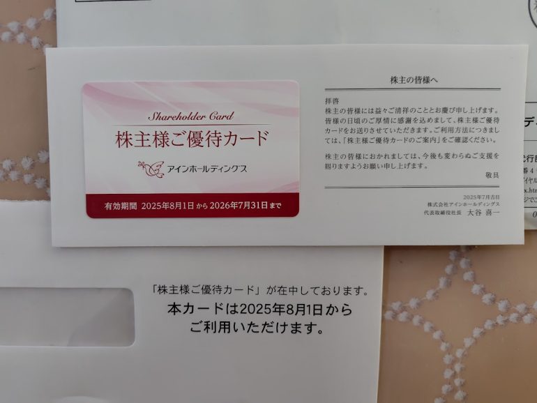 アインホールディングスの株主優待は、紙の商品券からカードタイプの商品券になり、これまで500円単位での使用が1円単位で使えるようになった。変更後は使用店舗も増え、雑貨店の「Francfranc」の店舗や「AINZ&TULPE WEBSTORE」 でも使えるようになった。