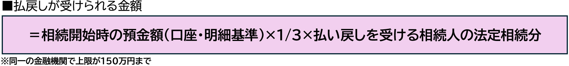 払戻しが受けられる金額は、相続開始時の預金額をもとに計算され、かつ口座や明細ごとに計算します。