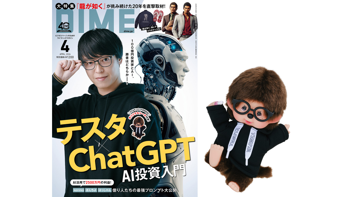 2月16日発売の雑誌『DIME』4月号では、資産運用における最強のパートナーとしても注目の「生成AI」を使い倒すためのノウハウを凝縮した大特集「テスタ × ChatGPT AI投資入門2026」を展開します。