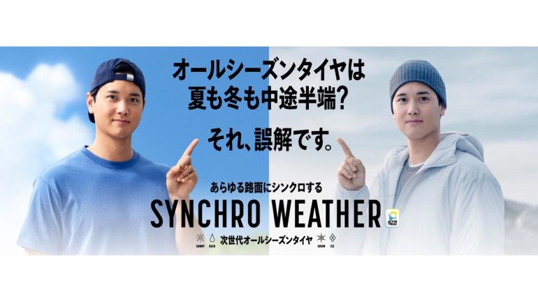 DUNLOP <社名:住友ゴム工業(株)>は、大谷翔平選手の出演する次世代オールシーズンタイヤDUNLOP「SYNCHRO WEATHER(シンクロウェザー)」の新CM「夏が苦手?」篇、および「夏も冬も中途半端?」篇を、2026年2月16日より全国(一部地域を除く)で放映を開始する。ダンロップブランドにおいて、大谷翔平選手を起用したCMは今回が2作目となる。