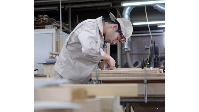 天童木工の家具は、その多くが職人の手作業で製造されている。