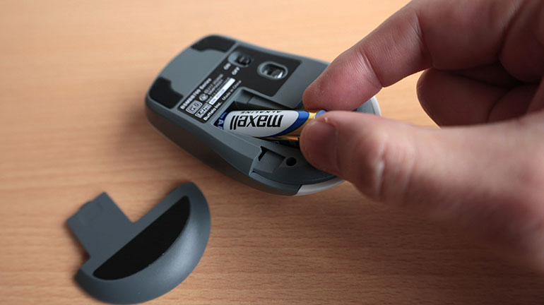 本製品は単三乾電池1本で駆動し、裏面のカバーを外して電池を差し入れる。この点は、他の大多数のマウスと共通している。