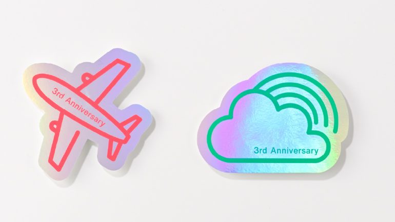 3周年を記念して、商品を1点以上を購入すると、限定ステッカーを先着1000名に進呈。一人1枚。なくなり次第終了。