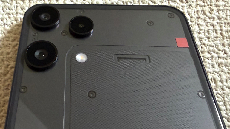 同機は、楽天モバイル版で3万2890円という低価格を実現しながら、ブランドの象徴ともいえる、内部構造が見える背面のシースルーデザインを採用しています。