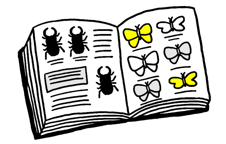 最も簡単に覚えられる方法は自然の中で昆虫たちを採集してきて、名前や生態を図鑑などで調べて、経験として頭に刻むという方法です。最近ではインターネットでの画像検索などでもある程度は調べられるようにはなりましたが、紙の図鑑を使うことで、調べた昆虫の隣の種類も気になったりして、一緒に覚えられたりすることもよくあります。