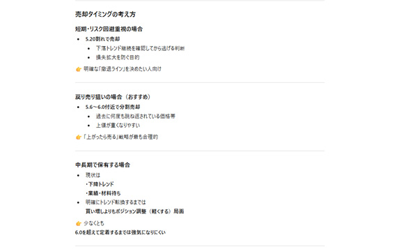 本誌連動企画として、こちらの記事では、ローソク足チャートの画像をAIに読み込まれた際に得られた、売却タイミングなどについてのAIの回答を全文で紹介。あくまでも参考程度の情報ではあるものの、ローソク足チャートの読み解き方について勉強になる内容ばかりだった。あなたの投資にも、ぜひ活用してほしい。
