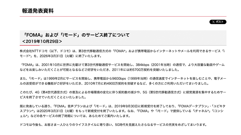 しかし、2008年に国内に投入された「iPhone」をきっかけに、そのビジネスモデルは崩れ、いよいよ2026年3月に3Gサービスの「FOMA」と共に、サービスの終焉を迎える。