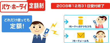 iモードもメールも使い放題の「パケ・ホーダイ(パケット定額サービス)」は定額制で、パケット通信量もお得になるサービス。2008年12月31日で新規受付を終了した。