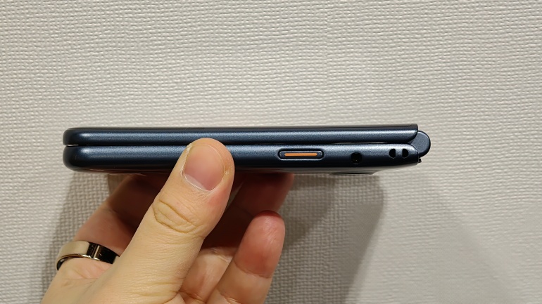 本体はIPX4/IP5Xの防塵防滴性能に準拠しており、イヤホンジャック、ストラップホールも備える。通信は5Gに非対応で、4G LTE対応だ。