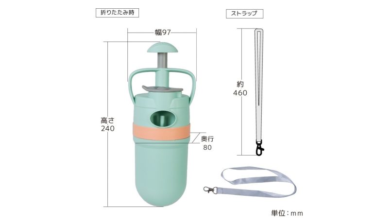 また、本体上部には予備の袋を収納できるスペースを備えており、必要な時にスッと取り出すことが可能。さらに、使用後に周囲を汚さない専用キャップ&持ち運びに便利なストラップ付きなのも嬉しいポイント。もちろん、アーム部分は水洗いが可能なため、常に清潔な状態を保つことができる。