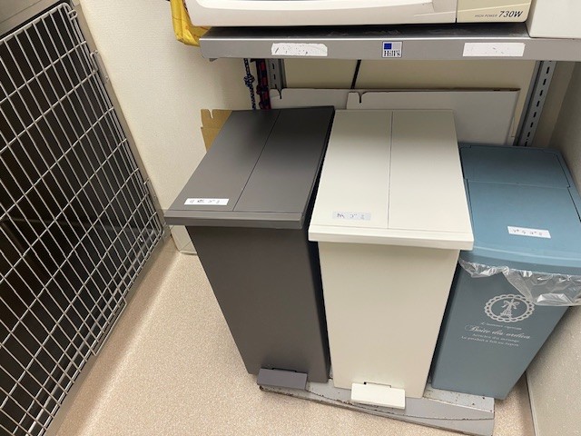 最後に、ペットのいる家庭で使うペットのごみ箱についてアドバイスしてくれた。「病院で使う場合と家で使う場合では違いがあると思いますが、ごみ箱はペットの身近にある日用品の一つです。ごみ箱のない家は無いと思います。前述したとおり、フタが無いごみ箱だと、中のゴミを誤食してしまう子もいるので、できるかぎり蓋つきが良いでしょう。