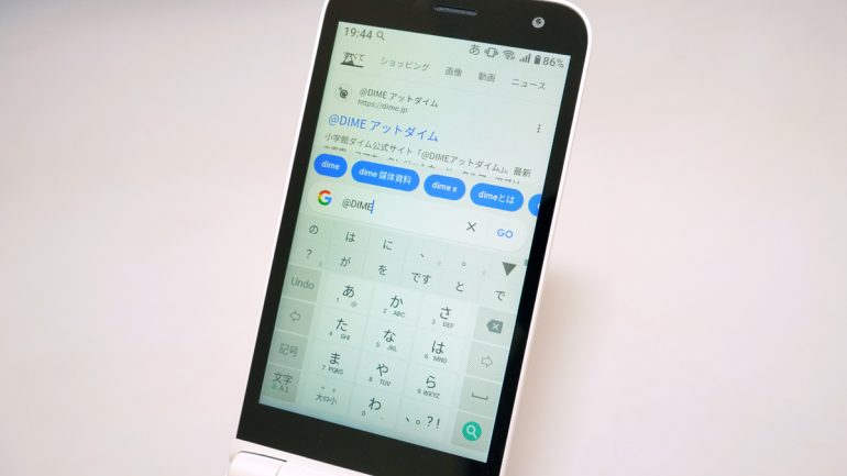 物理キーの確かな押し心地はある半面、文字入力の効率はあまりよくないということには改めて気づかされた。もっとも、ケースマはタッチパネルでの入力にも対応しており、入力欄をタッチすると、まずフリック入力に対応したソフトウェアキーボードが表示される。テンキー入力がまどろっこしいと思った、これを使うのも手だ。