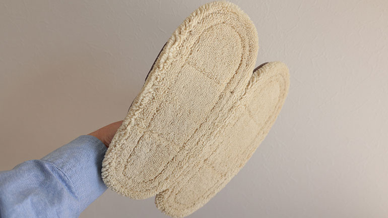 外観は普通のスリッパだが、その秘密はソールにある。この部分が、毛足の長いマイクロファイバーとなっている点が大きな特徴。
