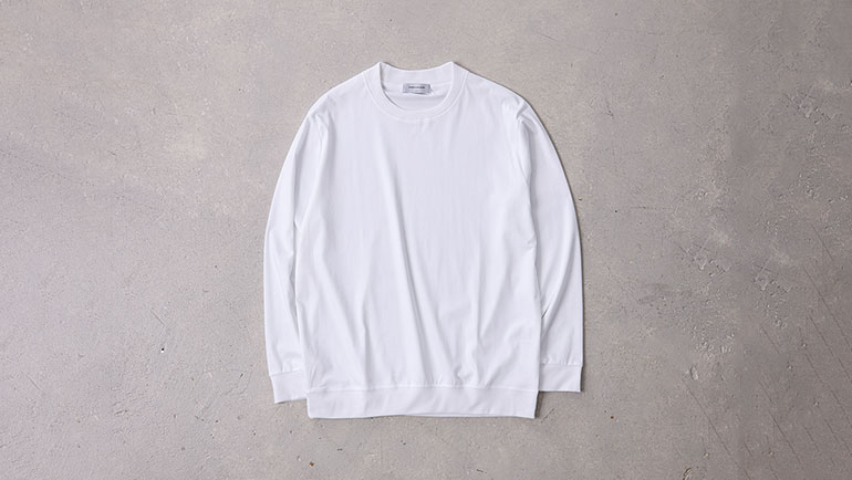 素材には綿100%を採用。さらに液体アンモニア加工を施すことで、毛羽立ちを抑え、なめらかなツヤを引き出している。この加工はコストが高く、安価な衣類ではあまり使われないものだ。