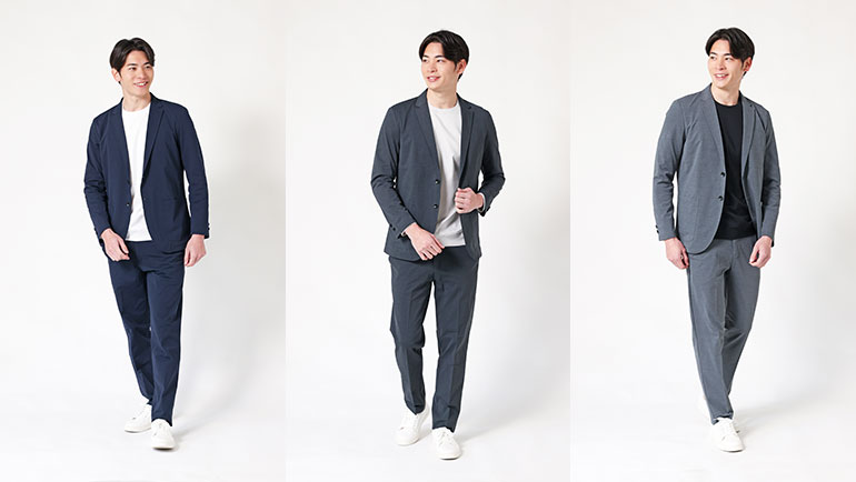 上下で1万円前後という価格帯ながら、スーツ見えする設計が支持され、春夏・秋冬のバリエーションを含め、年間10万着規模で売れているという。しかし、そのセットアップに合わせる“ちょうどいいインナー”がなかなか見つからなかった。