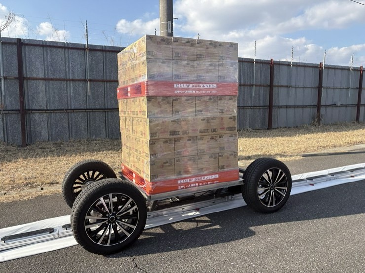 今回の実証実験では、花王の協力を得て生活用品660kgをパレットに積み車両に搭載、最高速度は時速50kmだが、風など屋外条件を考慮して実験では時速約10kmで走行した。