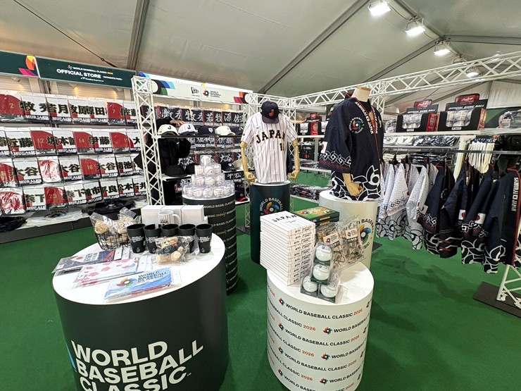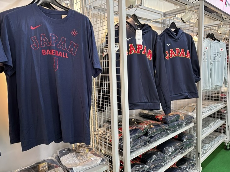 2か所のオフィシャルストアではWBCのロゴマークが入ったユニフォーム、アパレル、キャップなど500種以上を展開する。