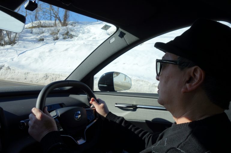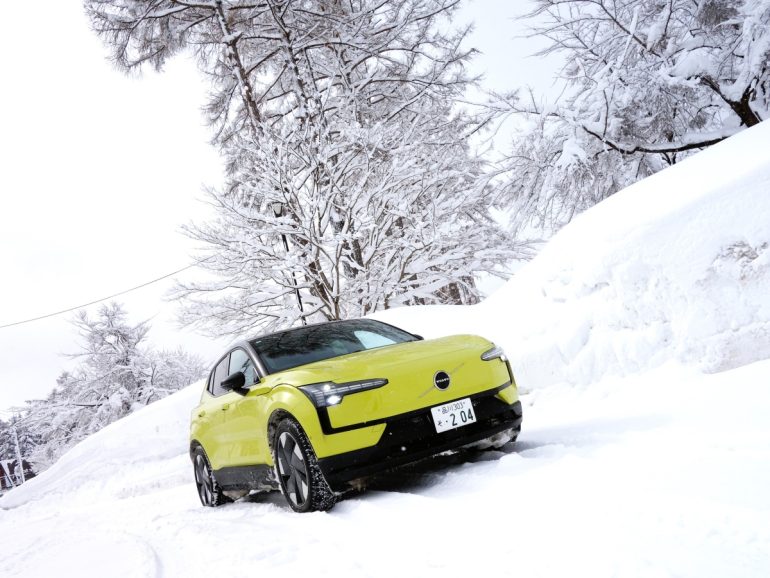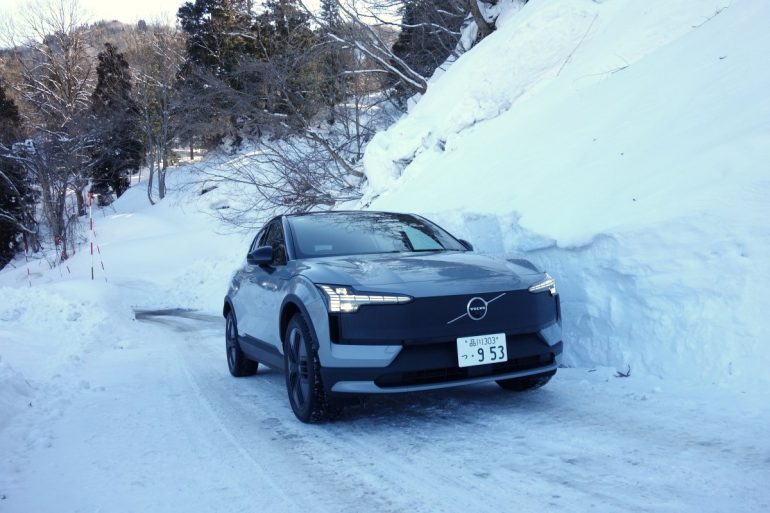 実は昨年、同じ妙高高原の雪深いルートを後輪駆動のEX30 Ultra Single Motor Extended Rangで走る機会もあったのだが、EX30のBEVとしての完成度の高さ、後輪駆動ながらBEVならではの駆動制御の緻密さから、驚くほど雪道に強いことなどを報告している。