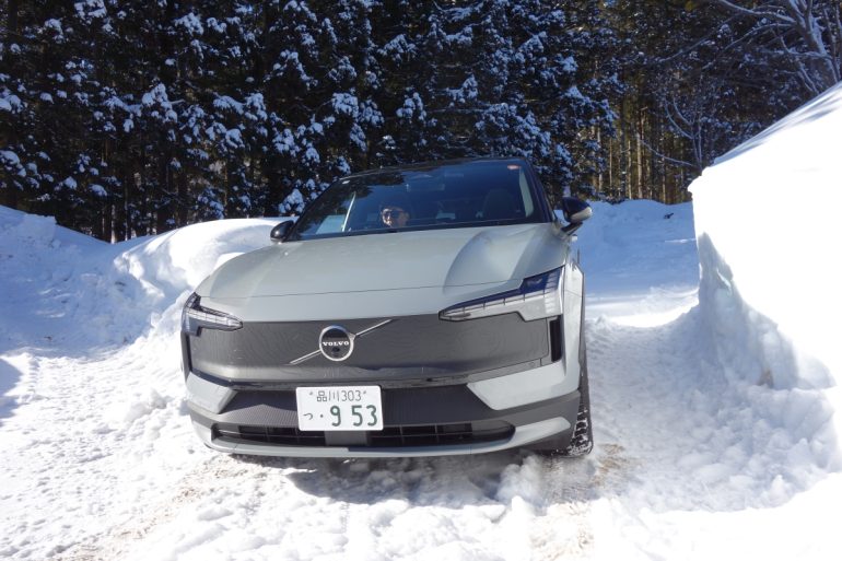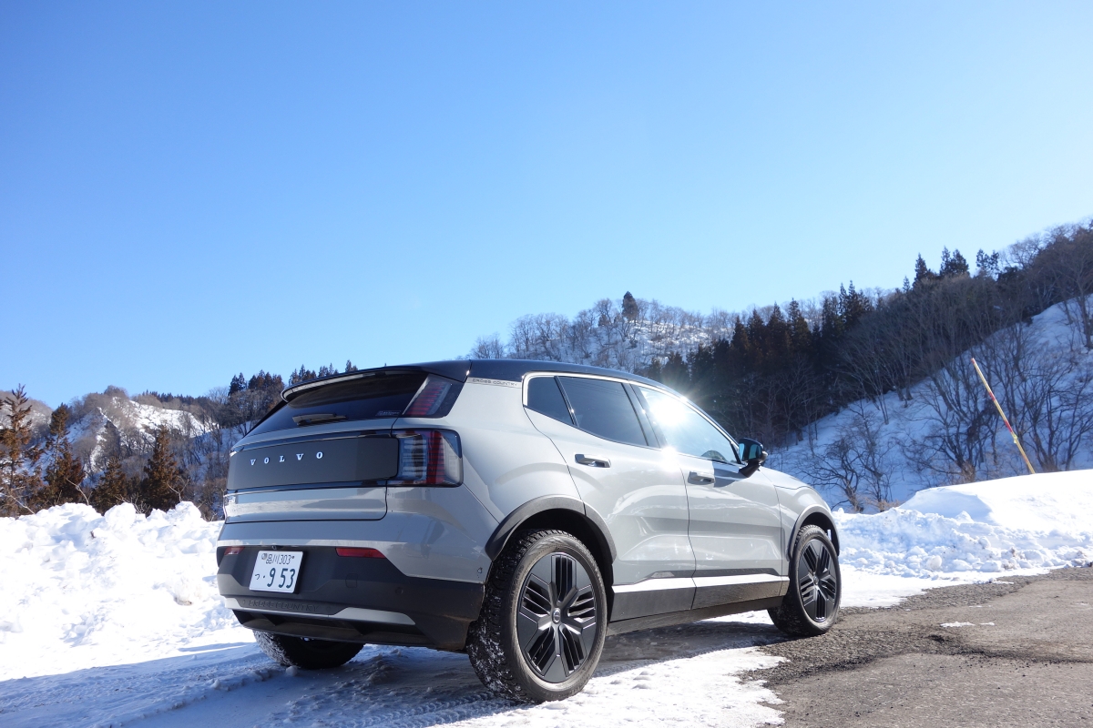 実は昨年、同じ妙高高原の雪深いルートを後輪駆動のEX30 Ultra Single Motor Extended Rangで走る機会もあったのだが、EX30のBEVとしての完成度の高さ、後輪駆動ながらBEVならではの駆動制御の緻密さから、驚くほど雪道に強いことなどを報告している。