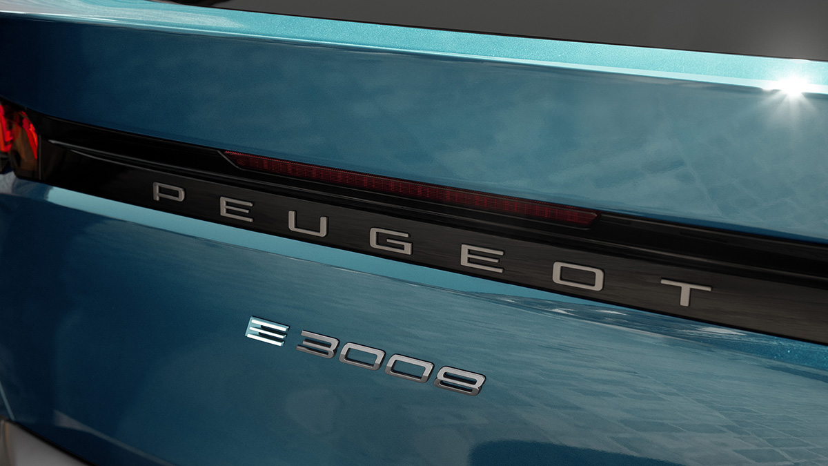 そのエクステリアは、ハイブリッドモデルから意匠の一部を変更した。「E-3008」専用デザインのホイールが装着され、そしてホイールアーチとサイド下部が塗装仕上げとなり、新鮮な印象を与える。 また、リアの専用バッジが、その存在を主張している。