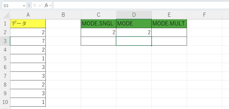 最後に、MODE.SNGL関数と他の関数の違いについて解説する。