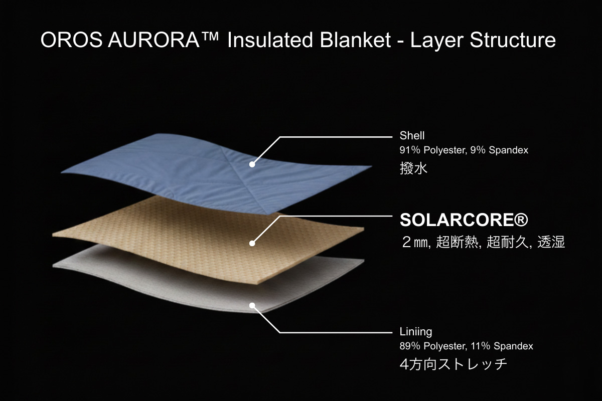 米国アパレルブランドOROS(オロス)の日本総代理店OROS JAPANは、応援購入サイトMakuakeにて待望の新カテゴリ商品『Aurora Insulated(TM) ブランケット』と新作ジャケット『Waypointジャケット』の予約販売を開始した。