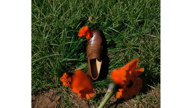 アッパーには、磨き上げられた上質なポリッシュドカーフスキンを使用し、気品ある光沢と洗練された佇まいを実現。アウトソールはランブルスコカラーのレザーソールで仕上げ、細部までこだわり抜いた美意識が息づいている。