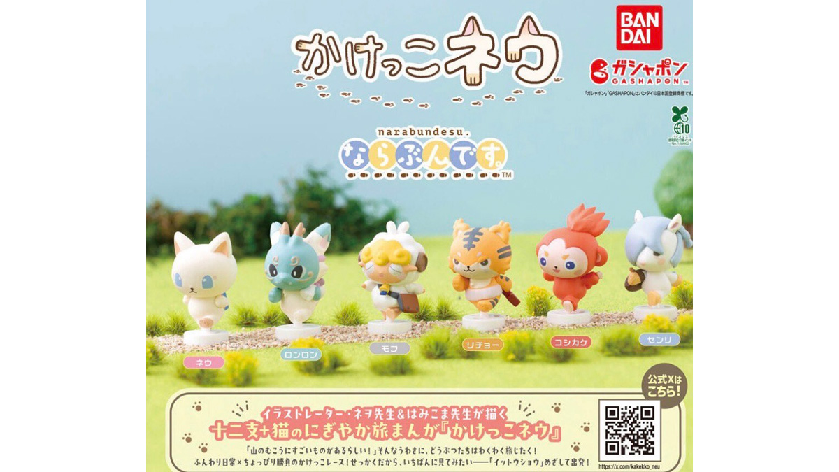 先日、『かけっこネウ』のキュートなキャラクターがバンダイのガシャポンに登場。マンガの魅力そのままに「イットウショウ」を目指してかけっこする姿と表情がなんともカワイイ。