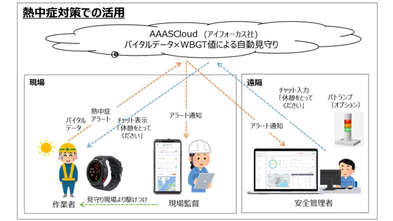 そこで各種熱中症対策用デバイスの活用は、こうしたリスク低減に有効とされてきたが、夏場のみの利用ニーズや運用負荷を抑えたいという現場の声も多く、併せて初期コストを抑え、簡便に導入できる仕組みが求められていた。