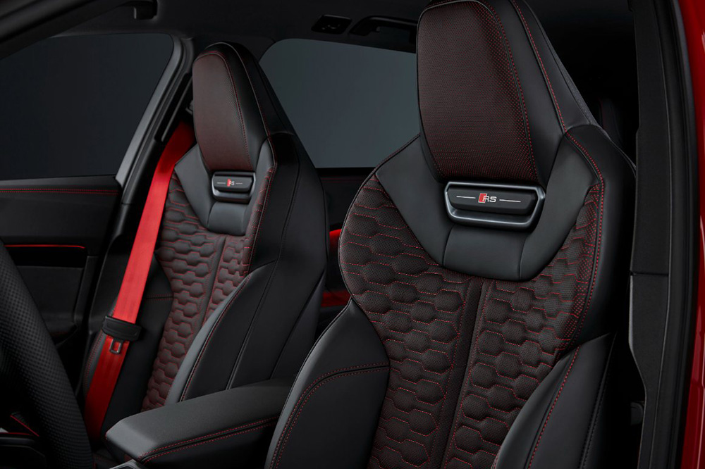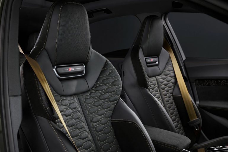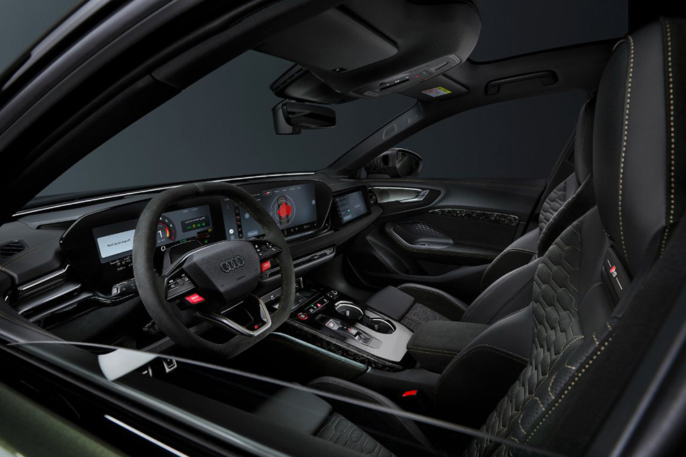 新型RS 5アバントおよびRS 5セダンに用意されるオプションのAudi Sportパッケージは、スポーティさをさらに際立たせてくれる。専用デザインのダイナミックなフロントおよびリヤバンパー、マットアクセントが施されたツートーンのダイヤモンドカット・ファントムブラック21インチホイールなど、エクスクルーシブな要素を追加。RSスポーツエキゾーストシステムと、285km/hへと引き上げられた最高速度が、さらなるパフォーマンスを実現する。