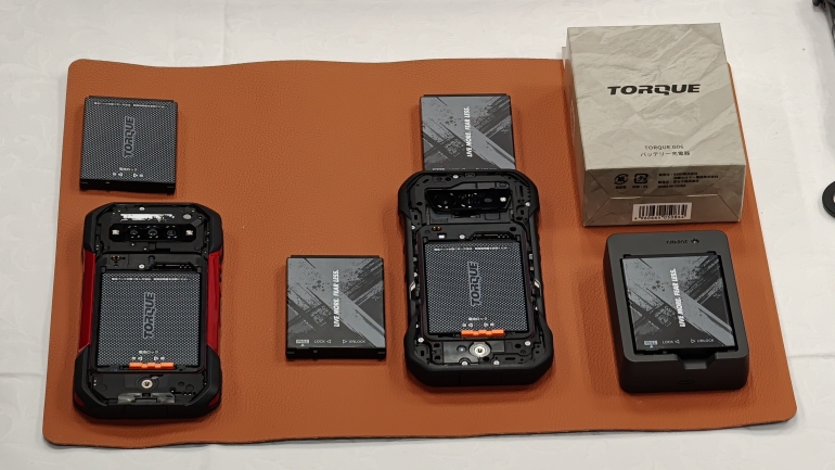 TORQUE G07では、近年のスマートフォンでは珍しい「着脱可能なバッテリー(4585mAh)」を継続採用している。これは、長時間の稼働を求める現場(法人)のニーズや、電源確保が難しいアウトドア愛好家のニーズに応えたものである。さらに、前モデルのTORQUE G06用バッテリーパックや専用充電器をそのまま流用できるという、既存ユーザーへの配慮もなされている。