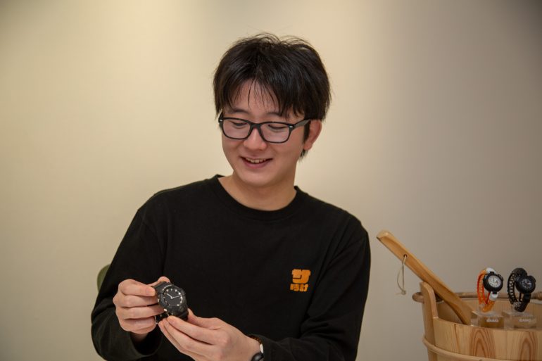 「仕事帰りにそのままサウナへ行く方も多いと思うので、普段からつけられるデザインにしました。現在時刻も分かるので、ファッション感覚で楽しんでいただけます。カラーは、コーディネートのアクセントになるオレンジと、より日常使いしやすいブラックの2色展開です」(鈴木さん)